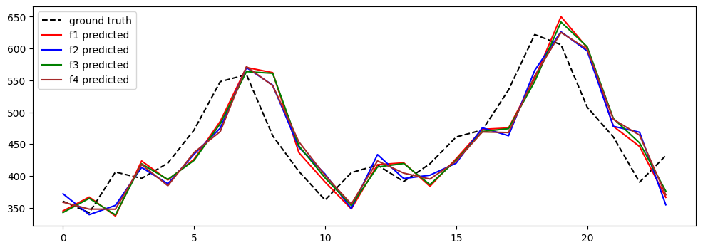 보면 4 모델 모두 시각적으로 보았을 때 잘 예측을 하고 있음을 확인 가능하며, 동시에 살짝 lagged된 형태로 예측을 하고 있음을 알 수 있다. 이는 모델 특성에서 기인된 것으로 보인다.