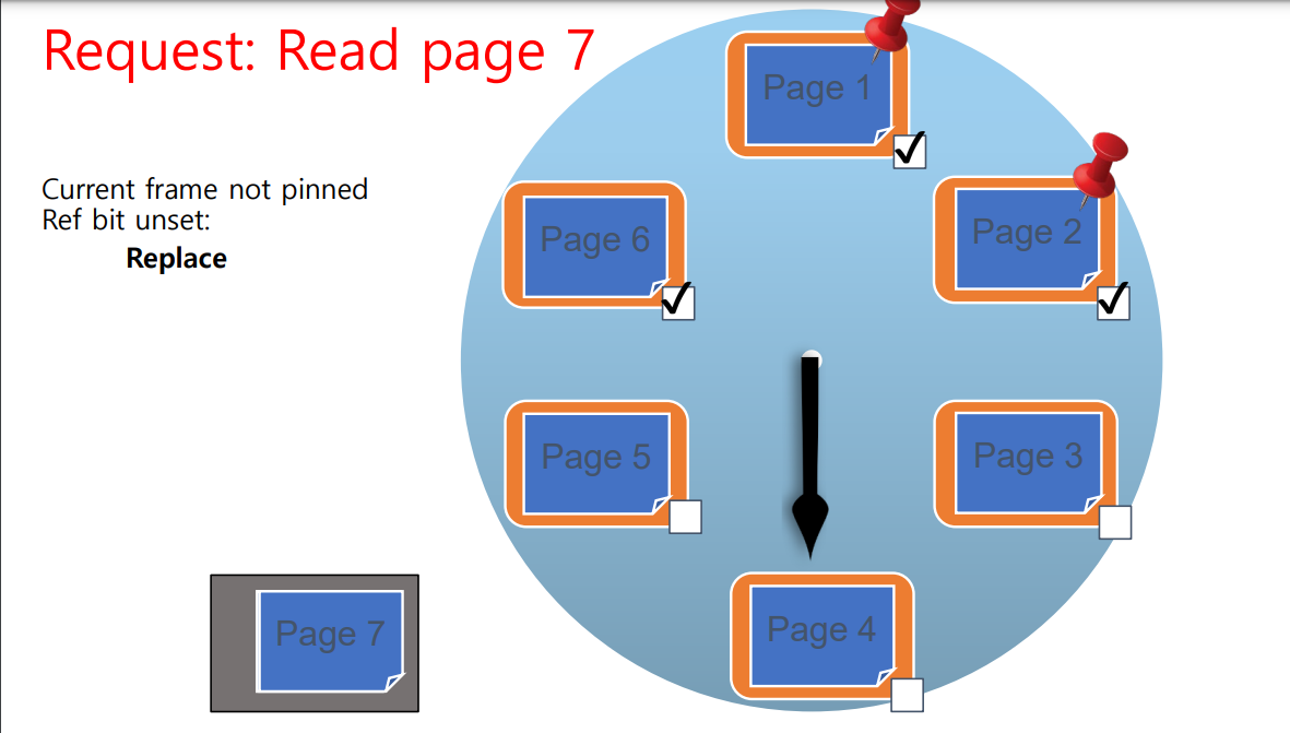 이후 page4의 경우 ref_bit가 -이고 unpinned되어있는 페이지기에 해당 페이지를 교체한다.