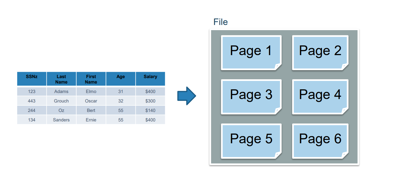 File은 page의 집합으로 정의된다, 각 페이지는 record의 집합을 포함하고 있다.