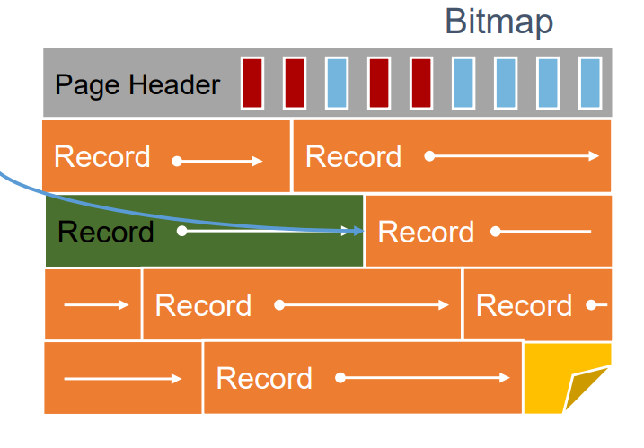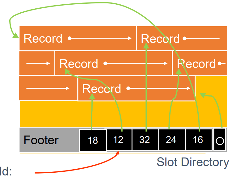 또한, 인덱스와 같이 외부에서 레코드를 가리키는 포인터는 레코드의 위치를 가리키지 안고 슬롯의 위치를 가리킨다.