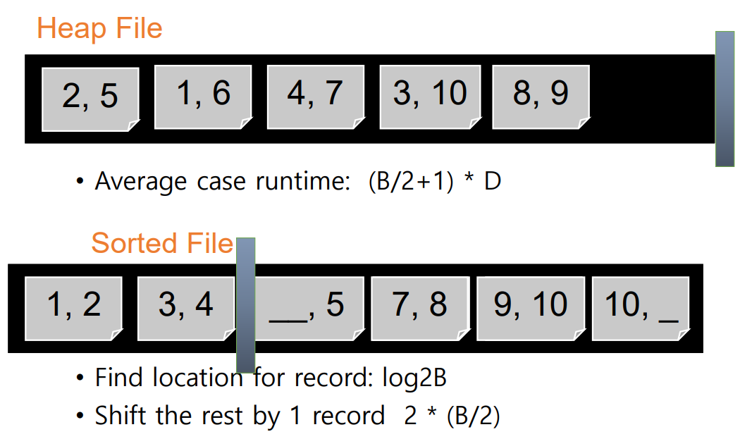 - Heap file 가정: Insert는 가장 마지막 파일 이후에만 append한다
