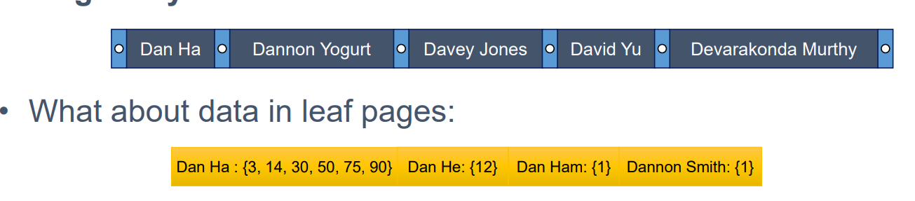 Data entries란 index에서 값을 어떻게 저장하고 표현하는 지에 관한 내용이다. 우선 실제 값을 저장할지, 참조할지에 관하여 선택 가능하고, 두번째로는 Clustering 여부에 따라 달라진다.
