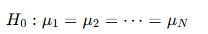 Kruskal wallis 검정은 아래의 귀무 대립가설을 가진다.