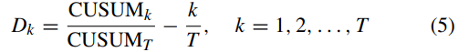CUSUM 검정에 사용되는 CUSUM 검정통계량은 아래와 같이 정의된다.