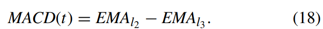 MACD는 단기 지연(l2) EMA와 장기 지연(l3) EMA 간의 차로 정의된다.