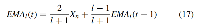 우선 EMA(Exponential moving avergage)를 정의한다. 이때 l은 lag parameter이다(Lag Parameter는 이동평균을 계산할 때 고려하는 시간 간격)
