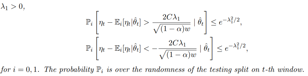 Fig 5 는 다양한 w 에 대해 변화 이전과 이후의 ηt 경험적 분포를 시각적으로 보여준다. 훈련 및 테스트 윈도우 크기가 증가할수록 ηt 의 평균 이동(mean shift)이 더 뚜렷해지며, 이는 더 빠른 변화 탐지를 가능하게 함을 시사한다(표 1과 일관된 결과).