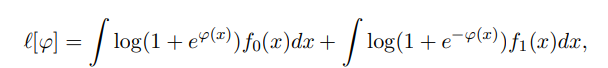 여기서 l은 φ의 peturbation과 관련하여 보면 convex임을 확인 가능하며 argmin = log(f1 / f0)임을 알 수 있다.