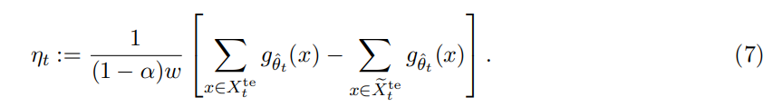 각 시점 t에서 훈련된 모델은 테스트 함수 g(x)를 제공한다.