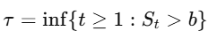 또한 아래의 τ를 Stopping time, 정지 시간이라고 정의한다. 이는 CPD 알고리즘에서 정의한 통계량이 임계값을 넘은 시점을 의미한다.