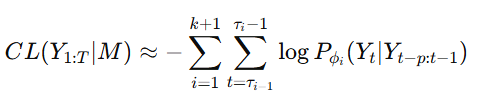 change point를 τ0=1, τ1,...,τk,τk+1=T+1 이라고 하자.
