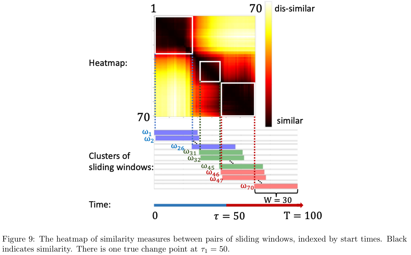 Fig9는 슬라이딩 윈도우들의 pairwise similarity와 클러스터링 결과를 보여준다.