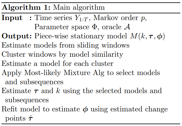 시계열의 Joint distribution이 Piecewise stationary이며 매개변수 공간 Φ의 벡터들로 매개변수화 되어있다고 가정하자.
