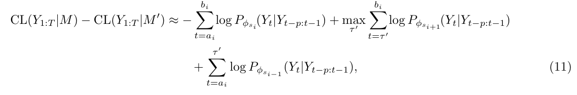 - 식 (11)은 변화점 τ′의 로컬 추정값을 기반으로 도출됨