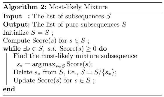 (4) Greedy algorithm(pruning the sequence): 순수 서브시퀀스(Pure Subsequences) vs 혼합 서브시퀀스(Mixture Subsequences) 판별