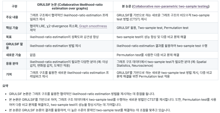 CTST 방법의 기반은 그래프 구조에서의 collaborative likelihood-ratio estimation (LRE)이다. 용이하게도 이 문제는 de la Concha et al., 2024에서 설명되었으며, Graph based Relative Unconstrained Least Squares Importance Fitting (GRULSIF) 또한 제안되었고, 이를 본 논문의 방법에서도 사용한다. 그 전에 비모수 추정에 관한 기본적인 개념을 아래에 언급한다.
