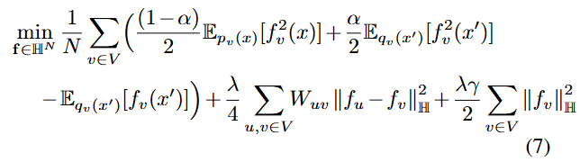 이 최적화 문제의 목표는 r = (r1 , ..., rN,), 즉 각 노드에 관한 relative Likelihood-ratio 학습하는 것이다. 이를 위해 3.1에서 밝힌것과 같이 부등식 4b에 나타나는 함수 f는 우도 비율 r을 근사하기에 f에 관한 최적화 수식을 풀며 이는 아래와 같다.