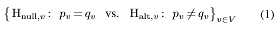1. H0에 대한 테스트 통계량 Sv는 노드 v의 데이터를 사용하여 p와 q의 유사도를 정량화한다.