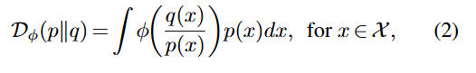 ϕ : R → R는 ϕ(1) = 0인 볼록하고 반연속인 실수 함수이다 (Csiszár, 1967).