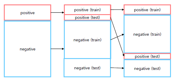 보통 일반적으로 dataset을 나눌때 균일한 데이터셋이면 모두 섞고 랜덤하게 7:3 혹은 유저가 원하는 비율로 tran과 test를 나누지만, Imbalanced한 경우 Original dataset의 비율을 맞추어 Train과 Test 또한 같은 비율로 유지하여 분할한다.