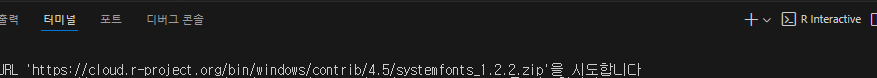 이때 중요한건 실행시 터미날은 R terminal을 사용해야한다.