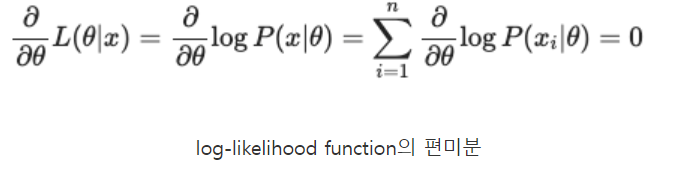 위 식을 풀고 값이 0이 될 때의 세타, 모수를 찾으면 된다.