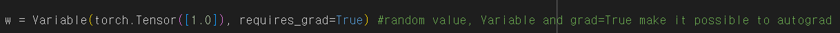 우선 우리가 실제로 하나씩 모두 미분하기에는 굉장히 많은 수고가 들기 때문에 pytorch에서는 autograd라는 기능을 통해 해당 계산을 자동으로 해준다는 것이다.