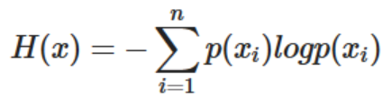 출처: https://www.youtube.com/watch?v=CdH7U3IjRI8 즉, 정보의 양인 log2(1/pi)에 관한 기대값이라고 생각하면 된다. 해당 수식에서 역수는 위에서 말한 정보표현의 길이의 개념과, log는 각 사건이 독립일때,두 정보량이 동시에 존재한다면 두 정보량을 더한 값과 이는 같아햔다는 원칙을 지킨다. 마지막으로 log2를 사용하는 이유는 정보의 양을 bit의 개수로 연관짓기 위해서이다.