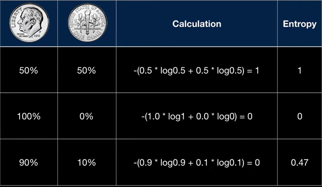 출처: https://www.youtube.com/watch?v=CdH7U3IjRI8 Example for calculating Entropy