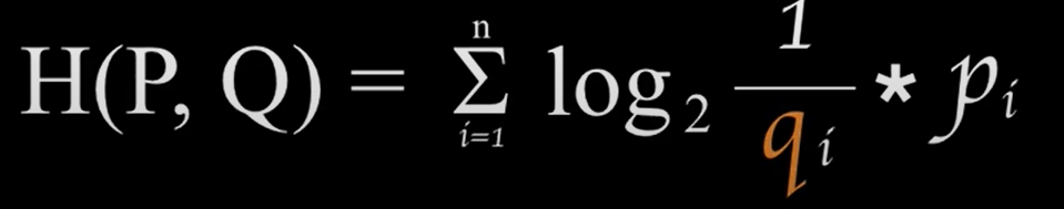 실제 분포인 p를 모르고, q분포를 모델링을 하여 실제분포를 예측하고자 하는 것이다. 예측 모델링을 통해 구한 분포를 q(x) 라고 해보자. 실제 분포인 p를 예측하는 q분포를 예측하였을때, 이 때 cross-entropy 는 아래와 같이 정의된다.