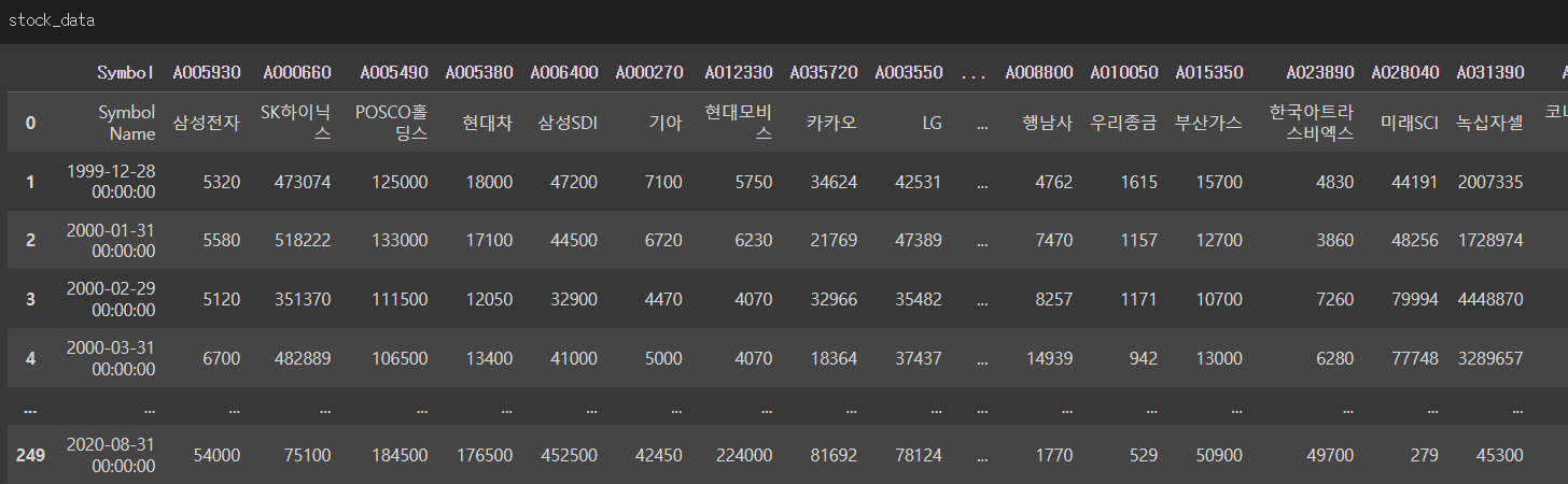 원본데이터 원본 데이터는 위와 같이 각 달 주식의 시작가, 종가가 적힌 데이터이다.