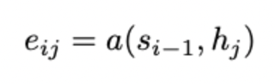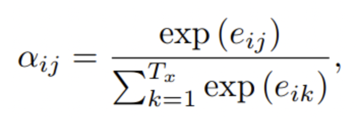 attention score 계산 식, 좌측 수식은 softmax 수식임을 알 수 있다 이를 이용하여, 새로운 context vector를 구성하고