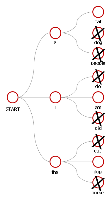 이후 3개의 후보를 더 만든 뒤, 이 중 가장 확률이 높은 3개를 고른다. 즉, K의 제곱개의 후보 중 누적확률 순으로 상위 K개를 뽑는다.