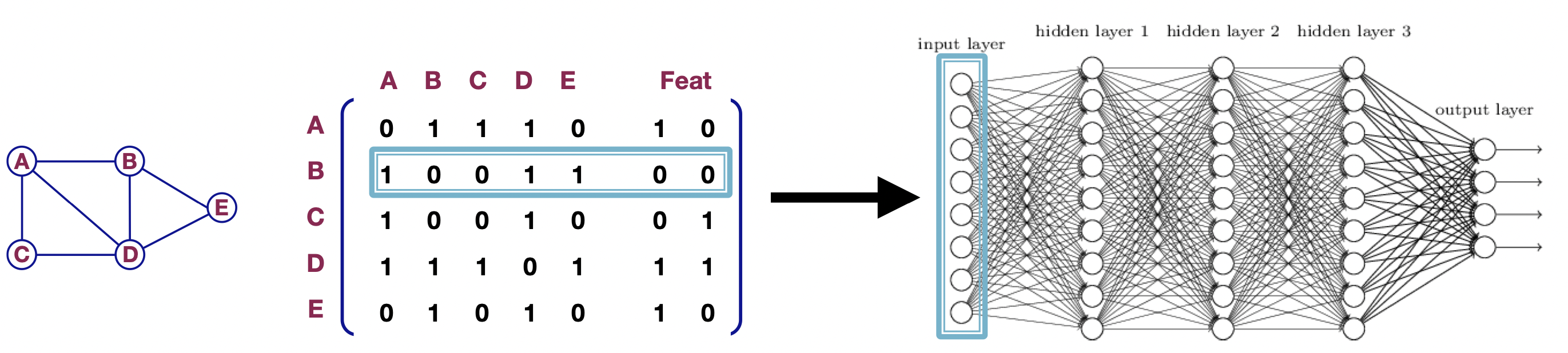이를 위해서는 우리는 Graph를 모델에 잘 입력해주어야하는데, 이때 이용되는 정보가 Adjacency matrix와 node-feature matrix(특성 matrix이다)