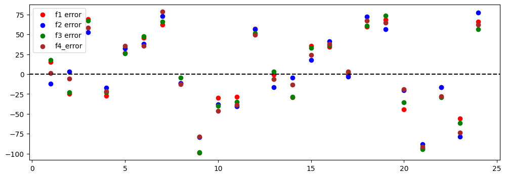 f1은 ARIMA(1,1,0), f2는 ARIMA(1,1,1), f3는 log-ARIMA(1,1,0), f4는 log-ARIMA(1,1,1)을 의미한다.