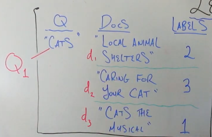 우선 Query의 경우 사용자의 검색어를 보통 의미한다. 위의 Search engine을 예시로 들면 'Learning to Rank' 등의 검색어가 될 것이다.