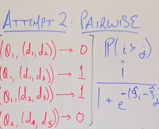 이때 d1의 rank가 d2에 비해 더 우선된다면 1을 뱉어내는 형태이다. 결국은 Binary Classification 문제로 할당이 가능하다.