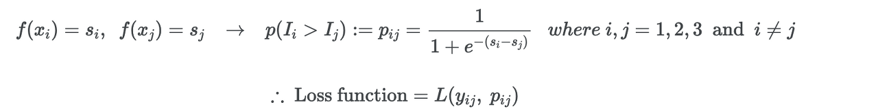 즉 수식으로 보면 아래와 같다. i의 스코어링 함수가 j보다 크다면(연관성이 높다, rank의 순위나 높다) P(i>j)는 1에 가까운 값이 된다.