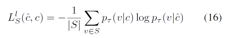 이때 타우는 distribution의 smoothness에 관여하며, 값이 0에 가가울 수록 v*(c)만 positive probaility를 가지는 카테고리컬 확률분포에 가까워지며 커질 수록 uniform distribution(균등분포)에 가까워진다. 계산의 복잡성을 줄이기 위해 V 대신 본 논문에서는 S를 사용한다(부분집합).