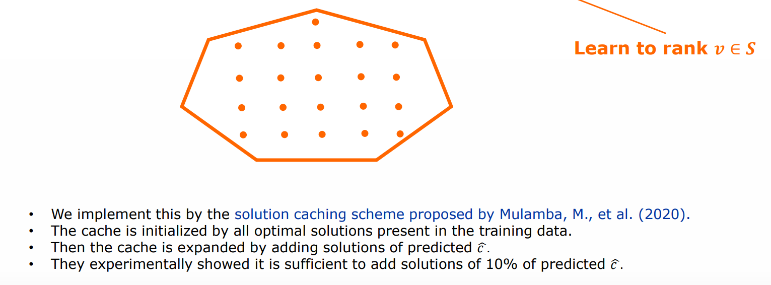 최근 방법론 중 subset of solution space의 loss로 문제를 접근한 것을 보고( Mulamba, M., Mandi, J., Diligenti, M., Lombardi, M., Bucarey, V., and Guns, T. Contrastive losses and solution caching for predict-and-optimize) 이를 이용해서 feasible points의 순위를 매기는 목적함수를 학습하는 것으로 문제를 바꾸었다. 해의 하위 집합이 주어진 경우 point별, pair별, list별 랭킹 손실 함수를 만들었다.