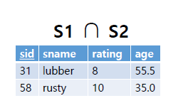 SQL로는 INTERSECT로 표현하며 union과 동일하게 두 relation은 compatible해야하며, SQL에서는 All 옵션을 가진다.