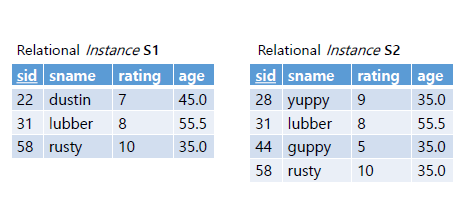 위의 예시 student 릴레이션에 적용하면 다음과 같다(set sementic이기에 중복된 행을 허용하지 않는다)