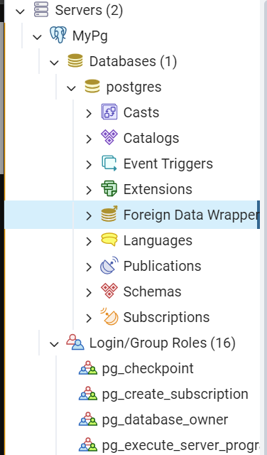 그러면 아래와 같이 잘 MyPg라는 새로운 서버가 만들어진 것을 확인 가능하다.