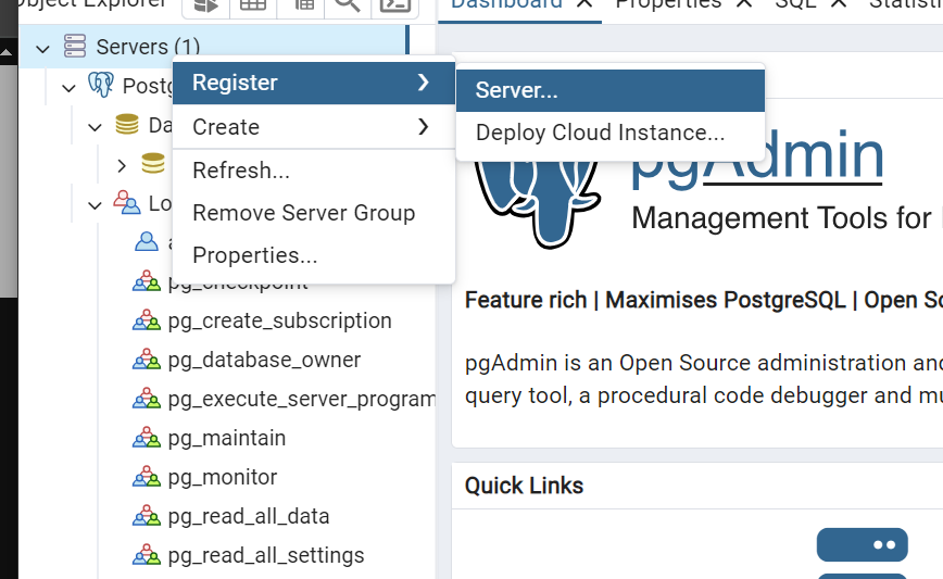 Servers에서 오른쪽 클릭 > Register > Server를 클릭