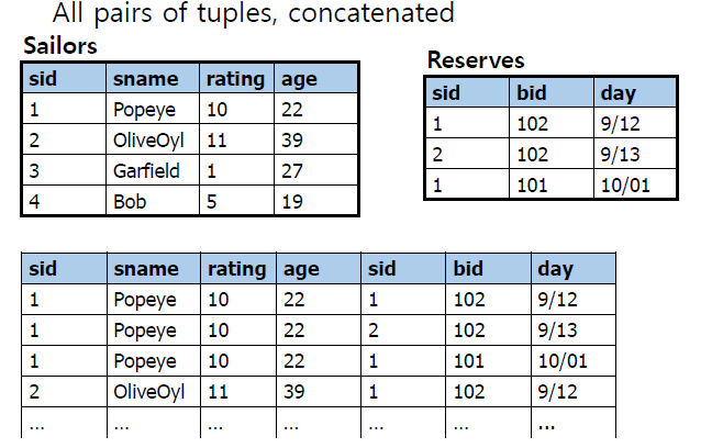 FROM Sailors AS s: sailor relation에서