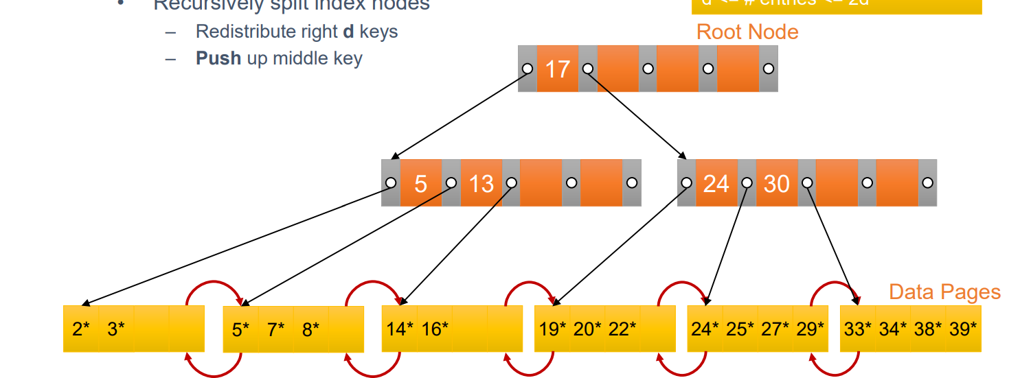 아래의 그림을 보자, 이때 그림의 d는 최소 데이터 엔트리 수, 즉 각 block의 최대 record 크기의 1/2이다.