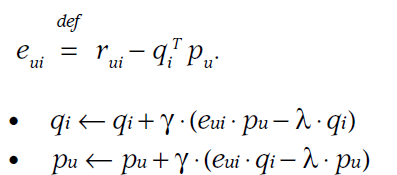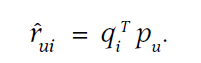 이 때 user i의 item j에 대해 예측되는 rating은 유저와 아이템 벡터의 내적값과 동일하다.