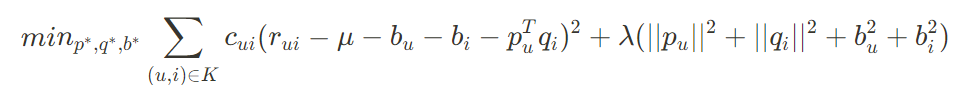 b_i: 특정 item에 관한 bias(예를 들어 특정 영화가 전체 평점에 비해 0.2가 좋은 경우)