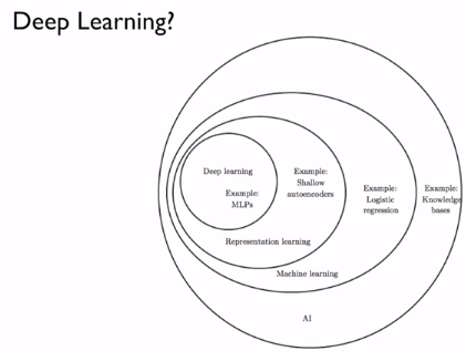 머신러닝과 딥러닝의 관계를 설명하는 그림이다. AI는 일반적으로 사람이 아닌 지능을 가진 모든 것을 이야기한다.