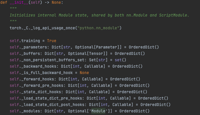 경우에 따라서 init에서 forward함수까지 같이 정의하는 코드도 본적이 있지만 대다수는 분리해서 작성한다(https://tutorials.pytorch.kr/beginner/basics/buildmodel_tutorial.html , torch 공식문서에서도 분리해서 작성했다)